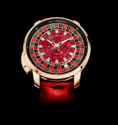 A close look at the exquisite workmanship of the roulette dial uncovers that each groove is painstakenly crafted, with precise colorings, perfectly replicating the appearance of some sort of casino roulette wheel. The principle dial, crafted from black onyx, not only adds a touch of style but also ensures its thoroughly clean design doesn't distract in the roulette's automatic rotation. I realize Jacob & Co. now offers models adorned with diamond jewelry and gemstones, but truthfully, I personally prefer this diamond-free version.