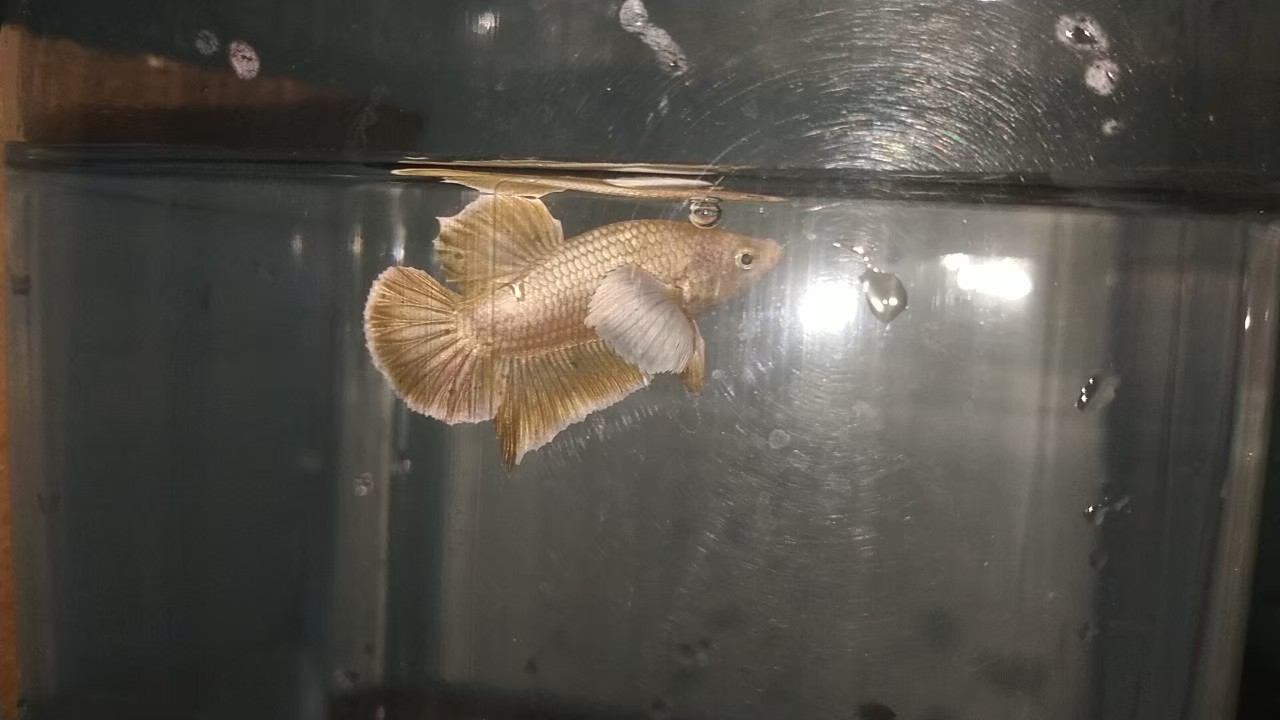 เจ้าที่สองเป็นสายเกล็ดเคลือบเงาของปลากัดสีทองวิบวับๆ แต่ขอบขาวเยอะ
